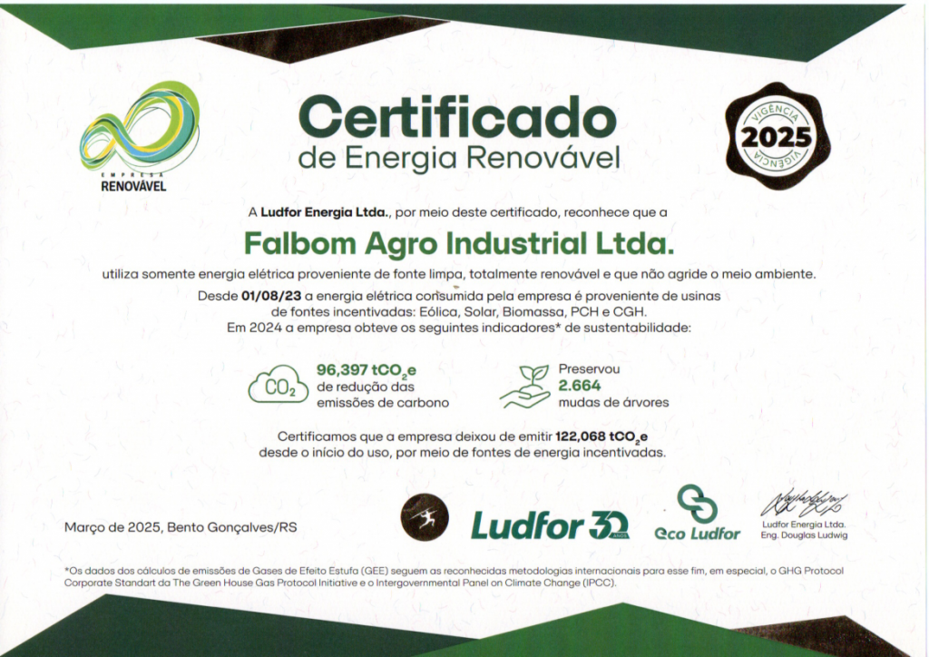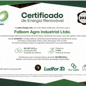 - Certificado de Energia Renovável desde 01/08/2023 a empresa preservou mais de 2.664 mudas de árvores